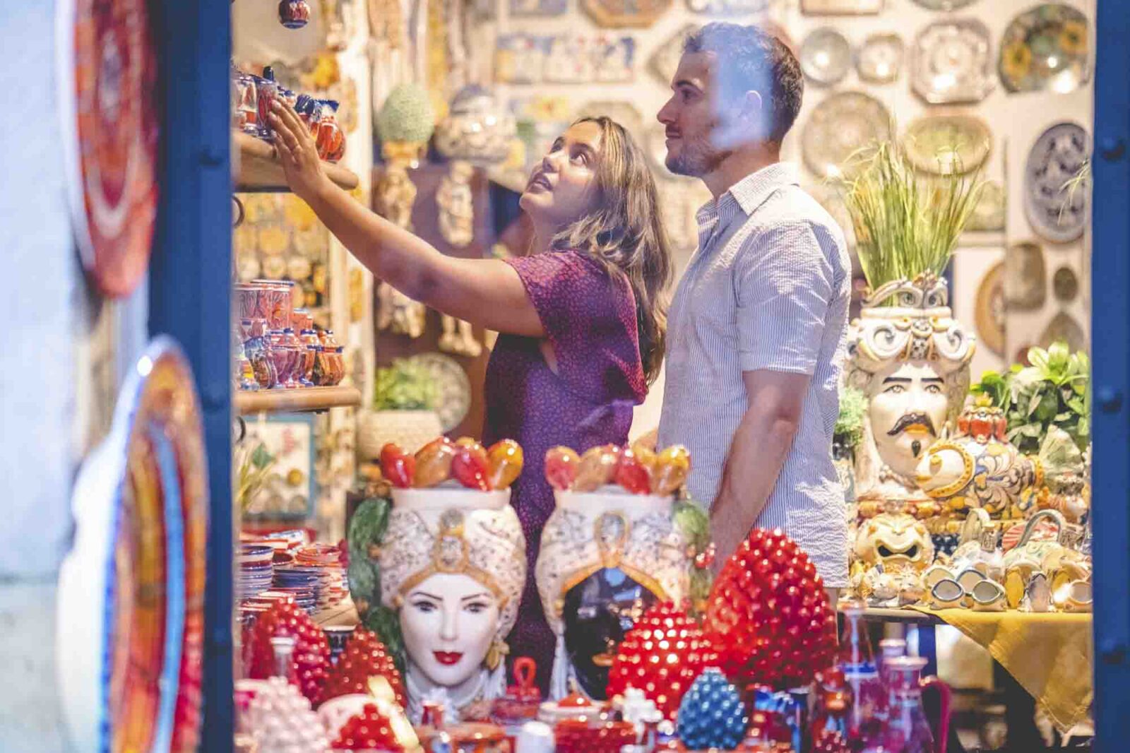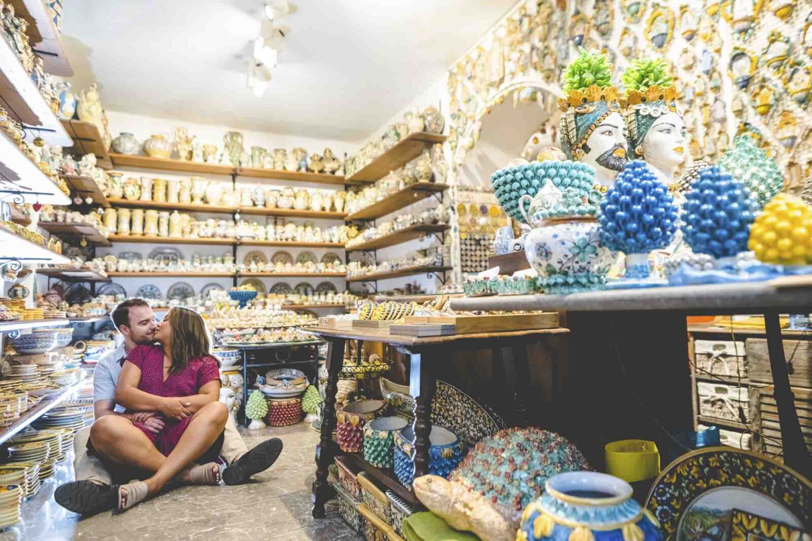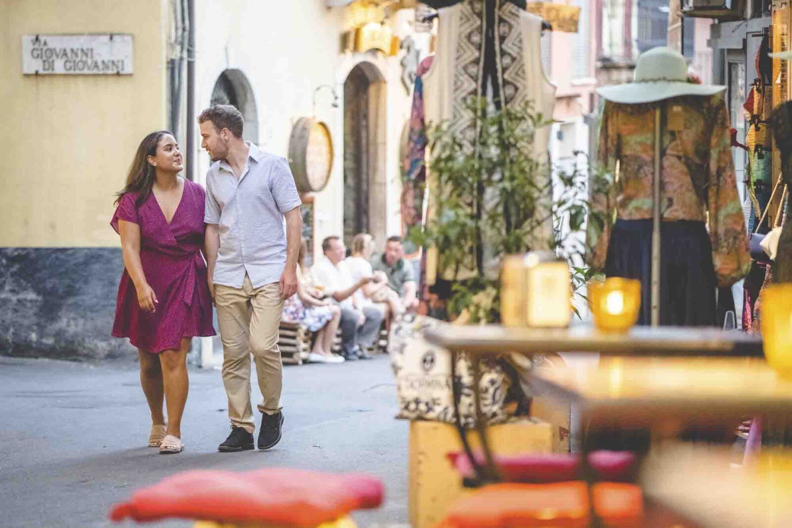 Mikael e Katia, ancora sotto l’effetto dello stupore iniziale, si sono immersi nelle strade di Taormina e nei suoi negozi caratteristici. Hanno passeggiato mano nella mano, godendosi ogni istante della loro giornata speciale. I vicoli pittoreschi, le facciate colorate e i profumi delle specialità locali hanno reso l’atmosfera ancora più romantica. Taormina ha offerto loro un rifugio di bellezza e intimità per celebrare il loro amore.
